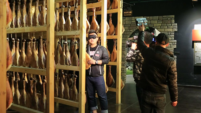 浙江第一美食類電視欄目《廚星高照》的主持人陳黃臻號稱美食小霸王,肉食主義捍衛者。來到巴瑪火腿的第一件事就是游覽展示了各種火腿文化的世界火腿博覽館,在這里黃臻不僅了解了世界各地的火腿品種,而且還展示了盲眼摸腿的技藝,令巴瑪火腿的工作人員也是連連贊賞